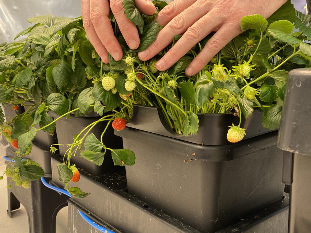 Strawberries are a shoo-in for such a setup. Commonly grown at-or-above head height for ease of inspection and harvest, these ruddy delicious deltas are never better than when dangling. The Strawberry Toppers on the 8.5L / 2.2 gal pots in the system also help cultivate the crop in an ideal position. Strawberry Toppers sit on the rim of the pot and allow you to lay your strawberry plants side-on. Foliage grows up and fruits hang down – ideal for modules on shelves or elevated racking. Look forward to more natural candy in the shape of innovative AutoPot growing arrangements @autopot_global