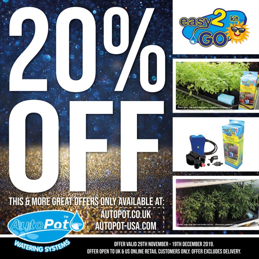 Offers available via www.autopot.co.uk and www.autopot-usa.com only Offers run November 29th to December 19th 2019 inclusive.