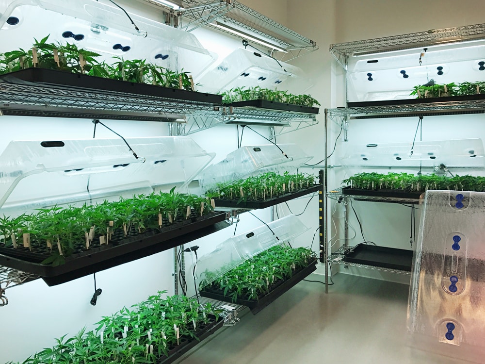 We recommend that you incorporate racking into the cloning, pre-veg and veg stages. This will maximise your use of space. T5 or LED lighting can be utilised at these stages to reduce the amount of headroom required. This will enable you to supply more flowering areas from a veg area with a relatively small square footage.