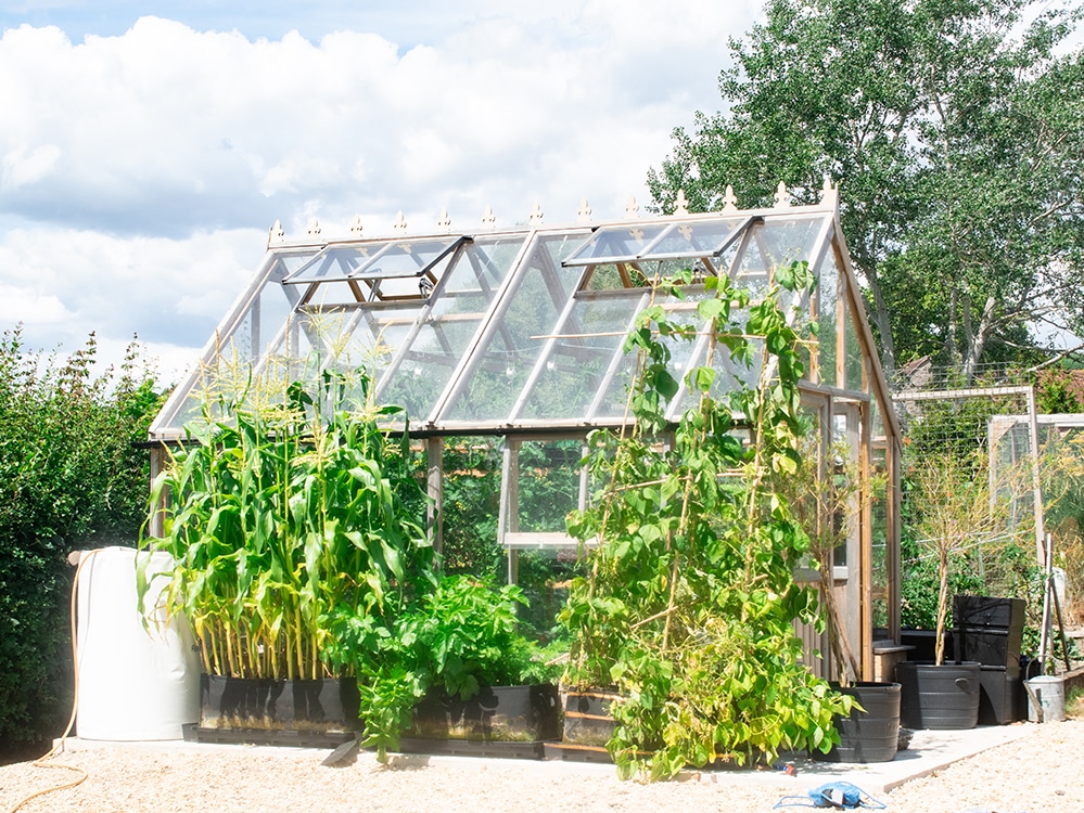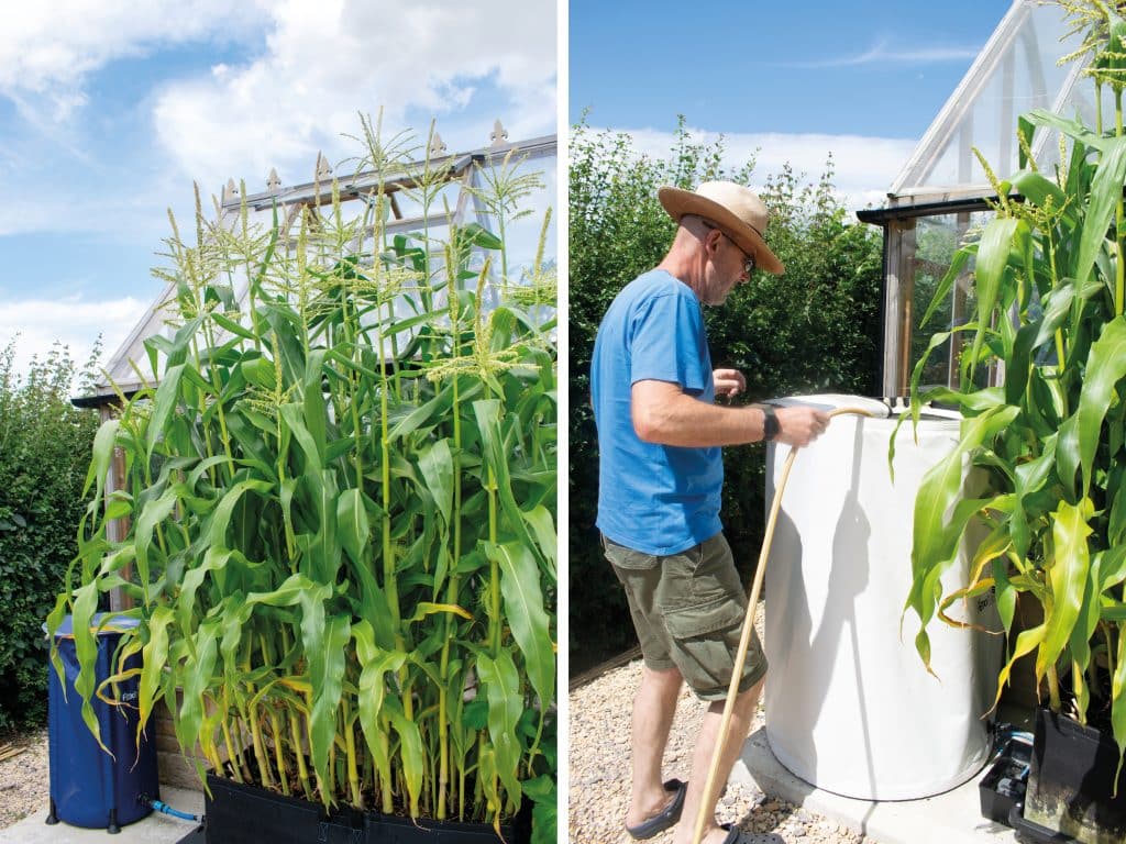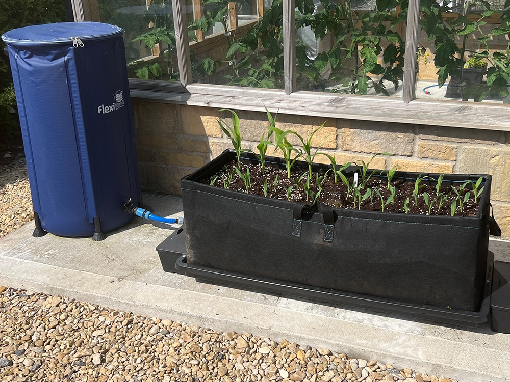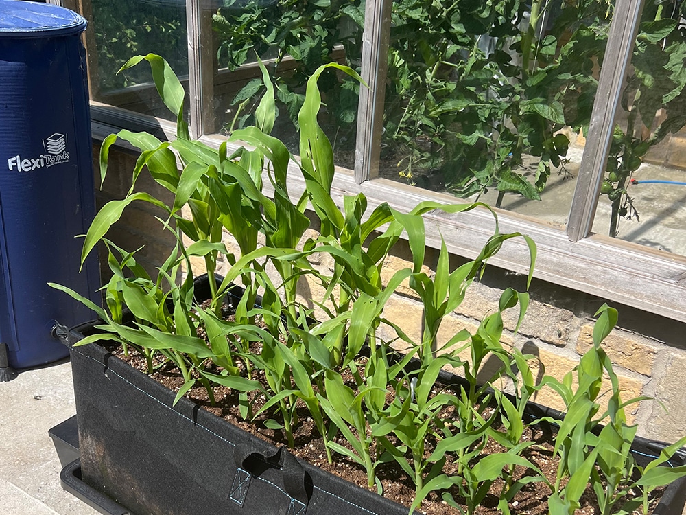 The sheltered side of our greenhouse in sunny Wiltshire would have been ideal. But there are no beds or plots on the less-windswept side. And the windier side (with the beds on) is too shady for corn. Again, the solution to the problem was Tray2Grow.