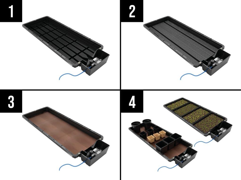 3. Root control in place – 4. Seed trays or pots added
