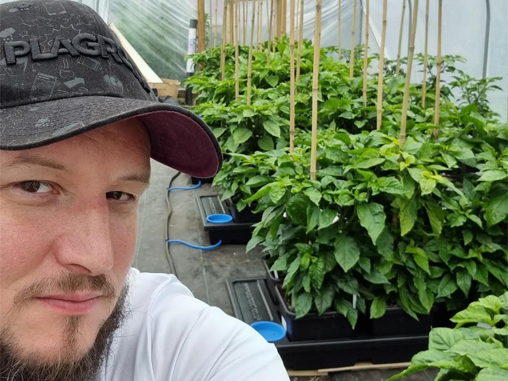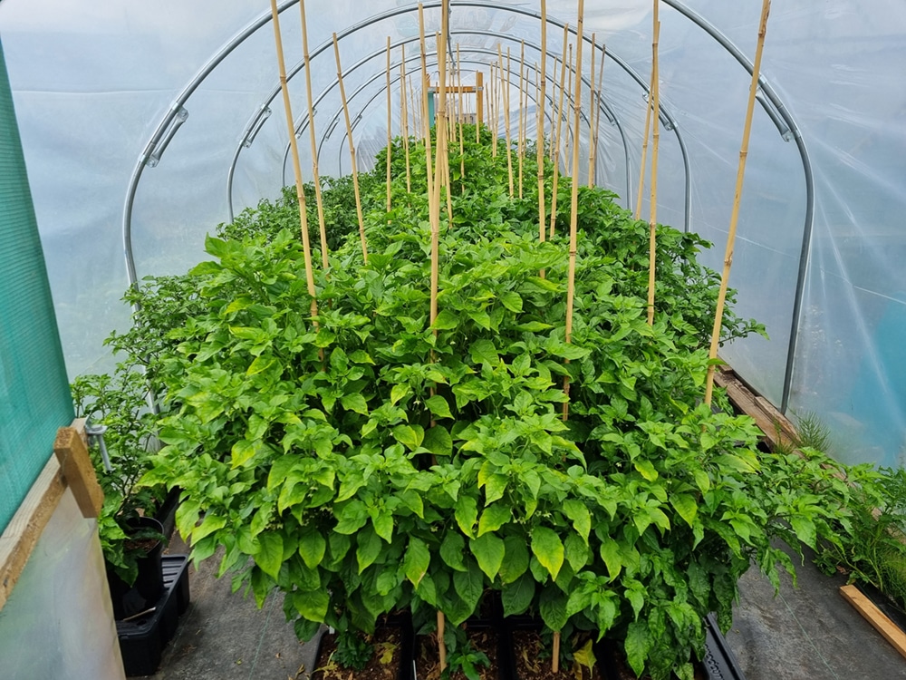 ‘Following a recommendation from an experienced chilli grower I know called Dianne from Pasture Fire in Lincolnshire I’ve refitted with AutoPot Auto8s for 2022. I liked the idea of there being just one AQUAvalve to maintain and the 9mm pipework and fittings that means there’s no real chance of blockages throughout the season. In the past I’ve used NFT (Nutrient Film Technique) which requires a hydroponic approach with pH monitoring/adjustment and uses a pump that needs a power supply. The difference with AutoPot is that they don’t require electricity or pH adjustment (if growing using soil) so are a lot less work.’ The Auto8s have also proved devilishly productive.
