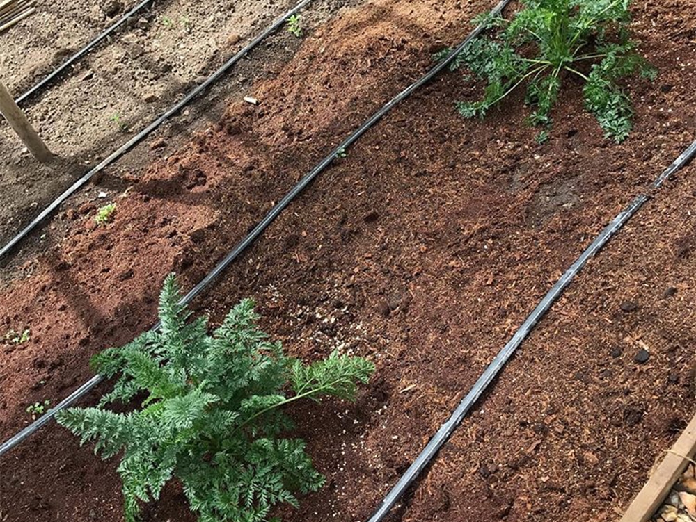 Thanks to the AQUAvalve in each AQUAbox Spyder, the bell peppers will receive truly responsive irrigation and feeding. Other systems, often relying on pumps, supply water and nutrients uniformly over a given area. This creates a problem if different plants within the same bed require differing amounts of water at any given time. The power-free, pump-free, gravity-fed Spyder has twelve strips of capillary matting running outwards from the central AQUAbox. Each strip draws water from the AQUAvalve in the AQUAbox only as required by the section of the bed that it is supplying. It was these very same devices that propelled Dale’s Malvern Show Giant Veg winning Giant Squash to glory by responsively feeding the plants 500sq ft root zone exactly as and when required.