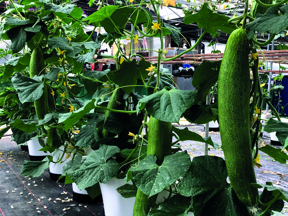 He emerged wearing two crowns – don’t ask how – for his prodigious AutoPot-grown produce. Like a watery broadsword his cucumber swept all before it to take largest and heaviest in its class at the Oxfordshire weigh-in. Its generous 7.76kg / 17.2lb distributed beautifully along its 77.9cm / 31.5” extent. This was one of two-dozen Zeppelin-variety giant efforts Dean started in 2 L / 0.5 gal rose pots with Dutchpro Pro Soil All Mix. Honourable mention to esteemed giant veg grower Mark Baggs who supplied the seeds for these. Plain water was administered by hand before the plants were transferred at 6 weeks to 25 L / 6.6 gal 1Pot XL modules potted with Dutchpro Coir. After a week or so of establishing the modules went on-stream with the AutoPot Watering System delivering Dutchpro Compo via the reservoir and pipework.