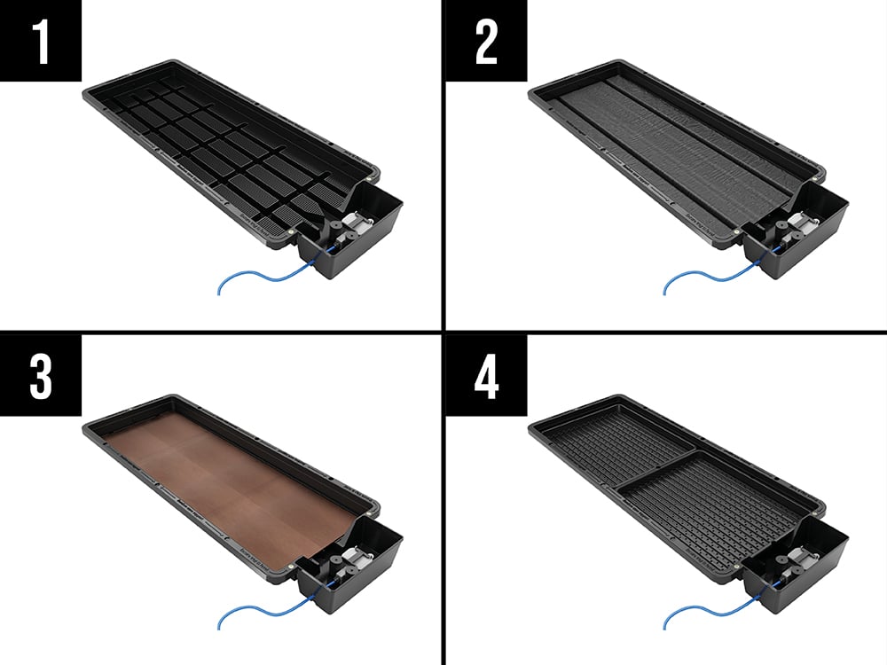 Simply sit your trays atop the root control sheet on your Tray2Grow. The capillary matting beneath will wick moisture up to the holes in the bottom of the micro herb tray. From there your grow media will absorb the moisture and carry it on to the plant.