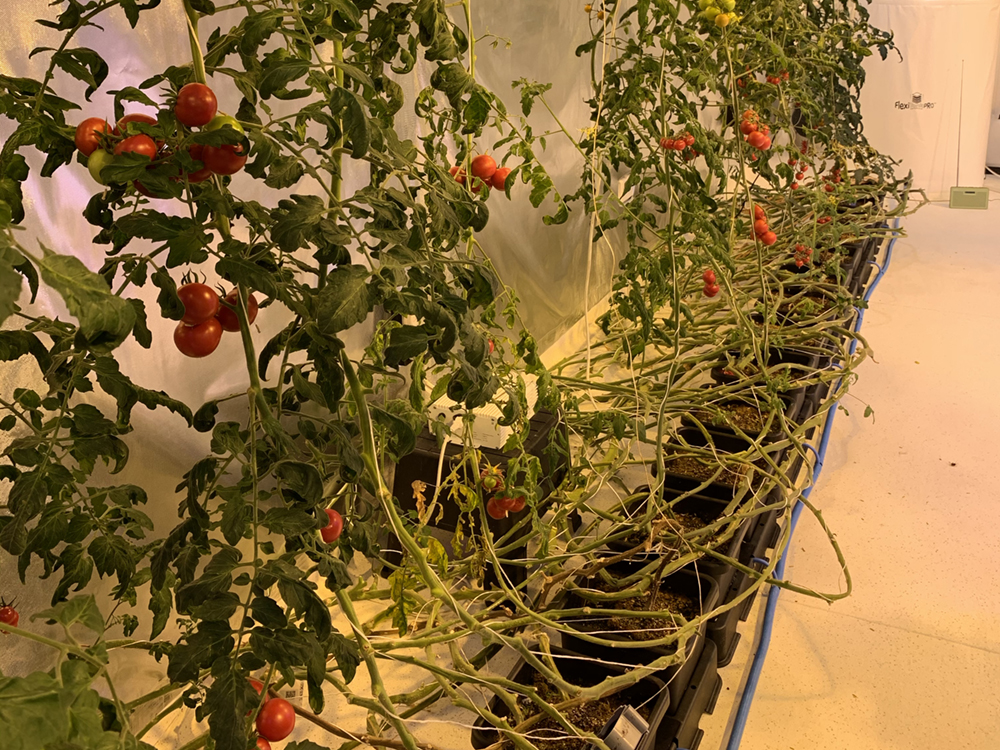 A whole 12 months on from being potted, our tomato plants are still banging out tasty baubles. The plants are in the 8.5 L / 2.2 gal pots of easy2grow modules. These modules are arranged in a long run to create a wall-like vine and fed by a FlexiTank Pro. 8.5 L is not, comparatively, a big space for each plant, especially over the course of a year. But Jason is a proponent of being able to grow long term in small areas and these plants really do provide an object lesson in what is possible.