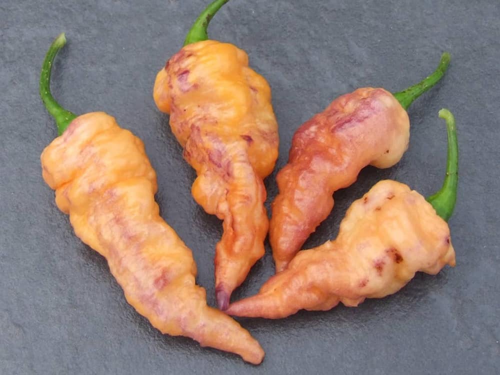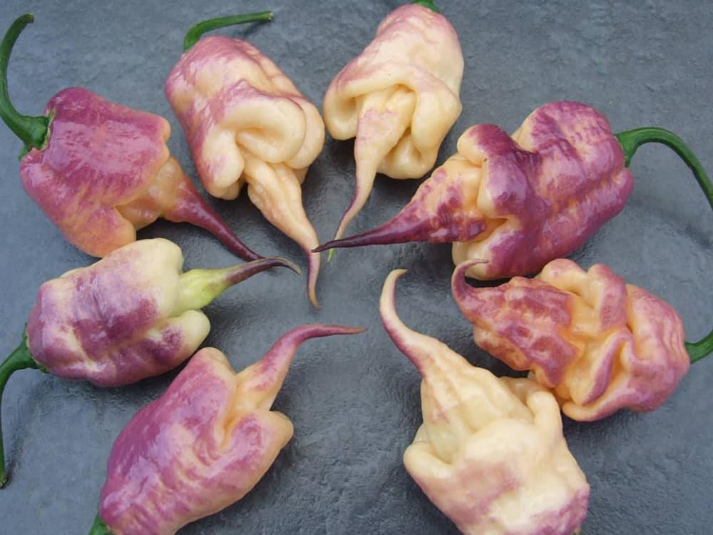For 2018 Plantasia’s development area was set up for experiments in organic growing using 1Pot Systems. Work here was, in many cases, a continuation of strain development carried out in previous years. In this vein the Blood Orange Bhut (BOB) phenos are now producing some absolutely sublime examples in every shade from deep to flamed orange to peach. The positively primal striping on the UV Scorpions gives you all the warnings you need as to the intense heat therein. By contrast the cream and almost iridescent purple on the spectacular Shadow Scorpions promises to lure many to their delicious doom.