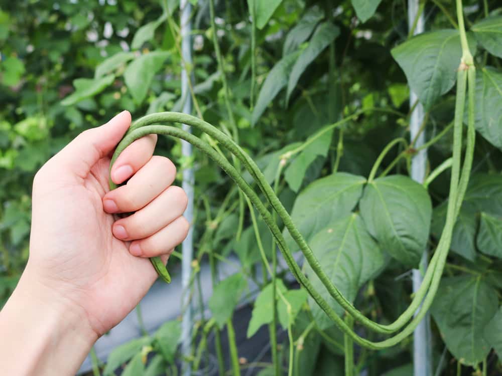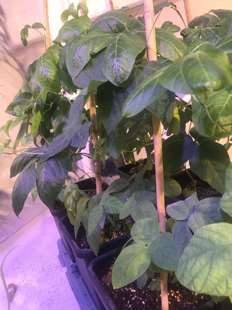 For yet more variety Rae has started growing yard-long French Beans in easy2grow Systems. easy2grow is the ideal AutoPot system for growing vigorously climbing plants where supports are required. The plants themselves will eventually reach around 2.5m / 8ft with pods of up to 50cm / 20in. To achieve a worthwhile crop these beans are almost always best grown indoors in arrangements similar to those used for runner beans. Yard-long French beans provide an object lesson in the benefits of allowing plants to control their own watering. Such varieties are perfectly happy growing under dry conditions and inexperience can often lead to over-watering. As AutoPots only supply water when a plant has exhausted its previous supply there is no chance of this kind of mis-step occurring using our technology. For the purposes of deliciousness Yard-long French beans require the lightest of culinary touches when cooked, a quick boil and simmer until tender is all you need.