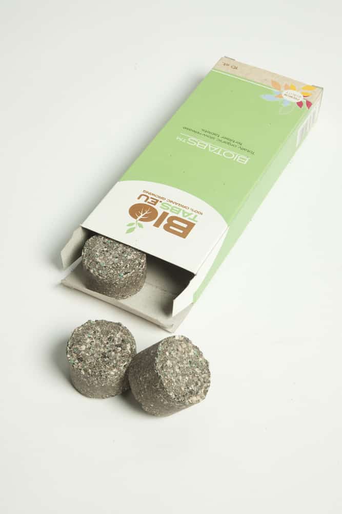 BioTabs contain a formula of slow-acting organic nitrogen, bone meal, blood meal, feather meal, fish meal, natural humic acids and beneficial soil bacteria. The beneficial soil bacteria improve the soil and contribute to the good uptake of the fertilizers, resulting in uniformly healthy growth without leaching of the fertilizers. The unique combination of fertilizers and soil bacteria ensure healthy growth and healthy soil.