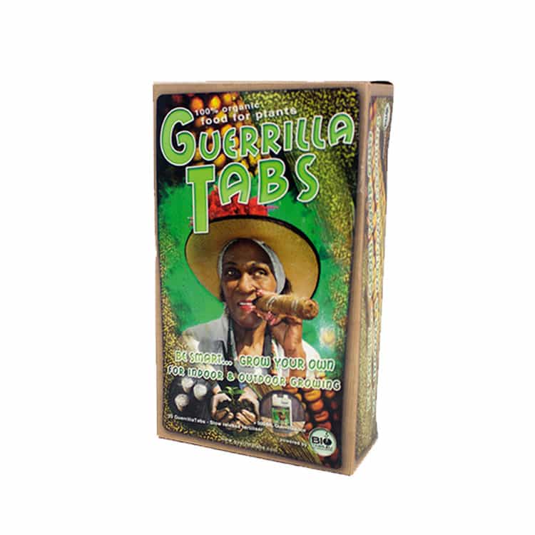 The BioTabs Guerrilla Box features GuerrillaTabs & GuerrillaJuice together! A highly potent and 100% organic double act. 20 organic slow release fertiliser tablets and 500ml of juice for the Guerrillafarmer.