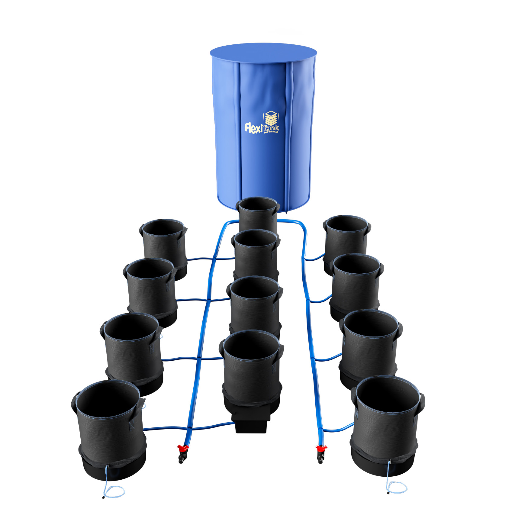As with all of our systems the FlexiPot System is easily extended so many pots can be linked to a single reservoir. The pots and trays can be easily moved at will, if the plants grow too large they can be spaced further apart with ease. Once set up with a water and nutrient filled reservoir this extremely versatile, gravity-fed system will run automatically. It will completely take care of all your plants needs without the need for pumps, timers or intensive maintenance.