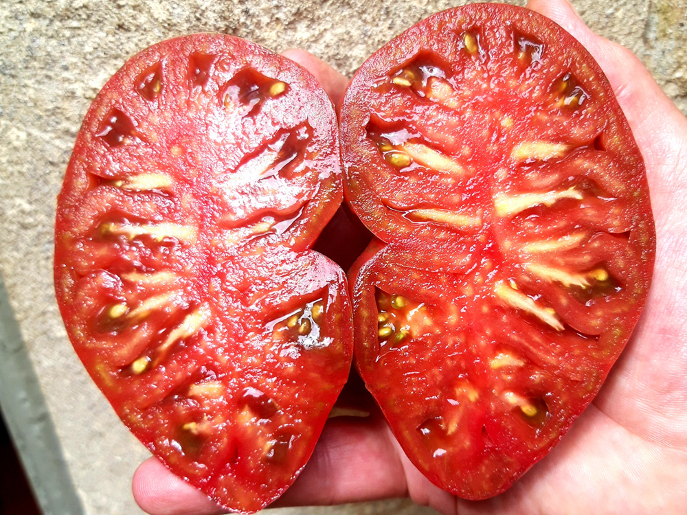 “Crossing normally starts with pollen taken from a regular leaf variety and crossed to a potato leaf variety. Regular leaf varieties are dominant over potato leaf varieties so we grow out some crossed seed in the same year and if the seedlings show regular leaves we know the cross has taken. In the following year we only need to save seed from one tomato, the year after that is when we get to something stable to work with. The seeds from these fruits are the backbone of potential stabilisation. Years 3 and 4 will determine how stable your cross is.” The eventual, crossed crop can be advantaged in terms of flavour but also growth characteristics, as Lance found when participating in The Dwarf Tomato Project.