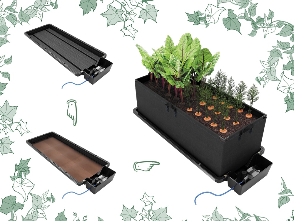 Above: A veritable self-contained allotment! The capillary mat configuration also allows you to grow with our new collapsible fabric planter – available soon as an add-on